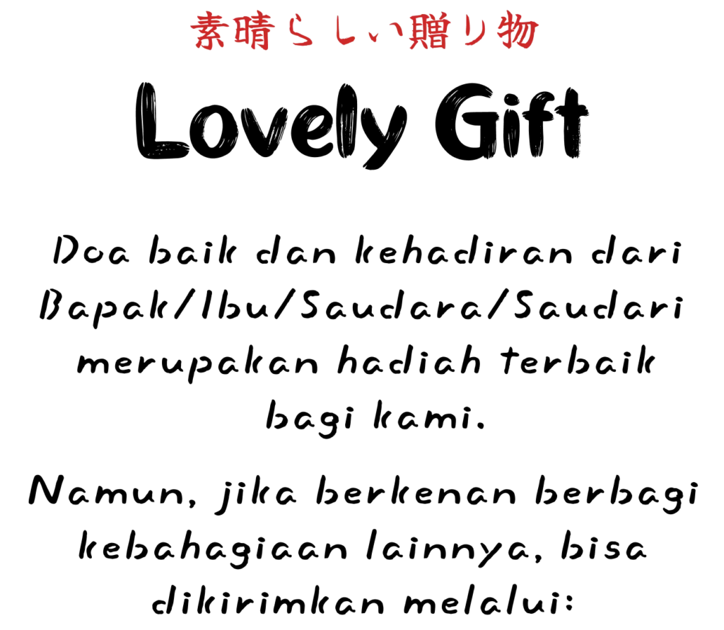 InsyaAllah jadi keluarga yang selalu dilimpahkan keberkahan, kebahagiaan, dan kasih sayang. Semoga lancar semua prosesi acaranya, dan sehat-sehat lahir dan batin terus kalian berdua selamanya!